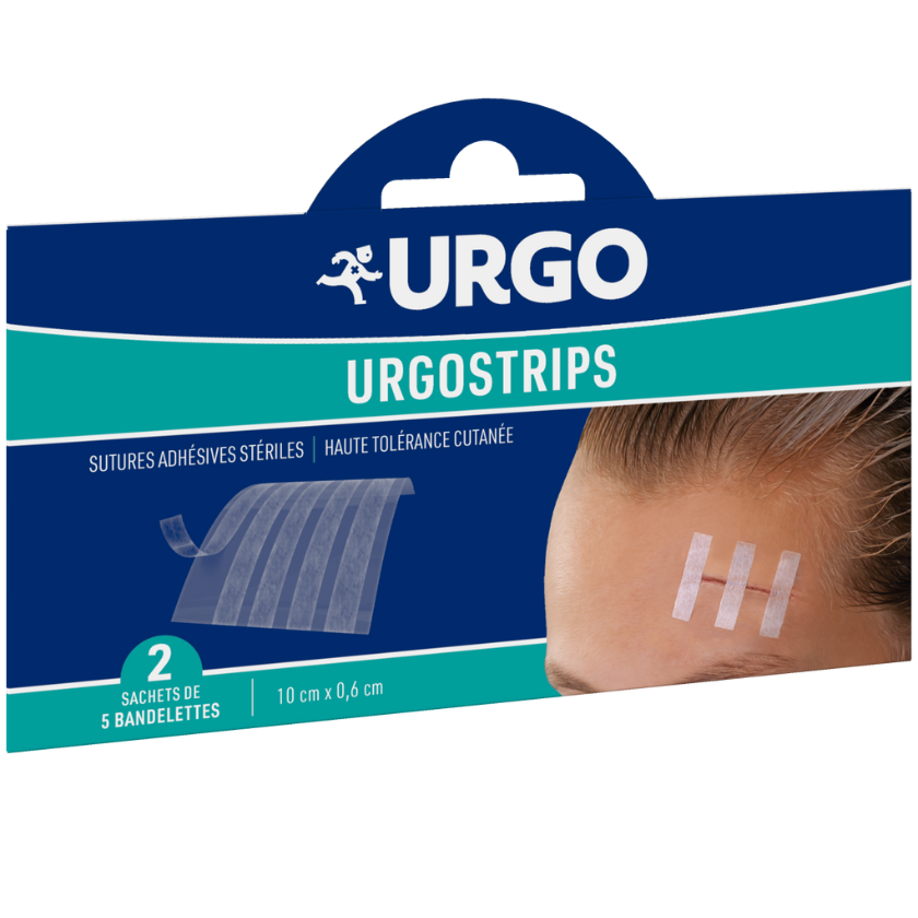 URGOSTRIPS, Sutures chirurgicales Adhésives Stériles. Indications : Rapprochement rapide et efficace des berges de la plaie (chirurgie d’urgence, chirurgie réparatrice et dermatologique), Sutures rapides des plaies superficielles. Demandez conseil à votre médecin ou votre pharmacien et consultez la notice avant utilisation. Ce dispositif médical est un produit de santé réglementé qui porte, au titre de cette réglementation, le marquage CE. URGO Healthcare- 21300 CHENÔVE- RCS DIJON 798 251 559 – Capital social 56 280 458 €. 01/2025